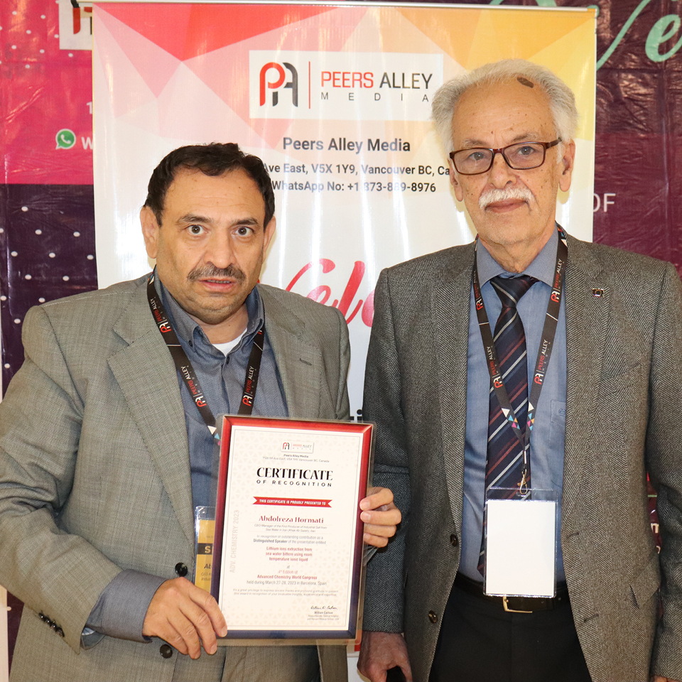 CEO Manager of the First Producer of Industrial Salt from Sea Water , Iran